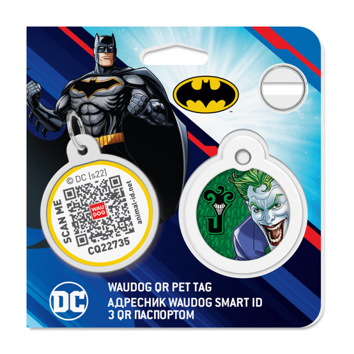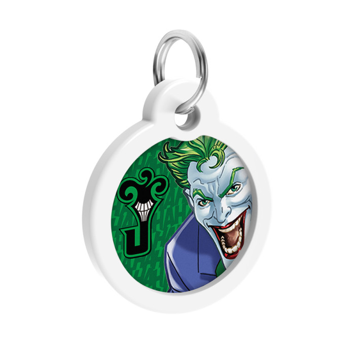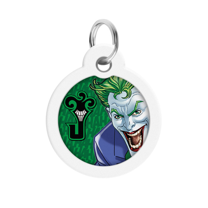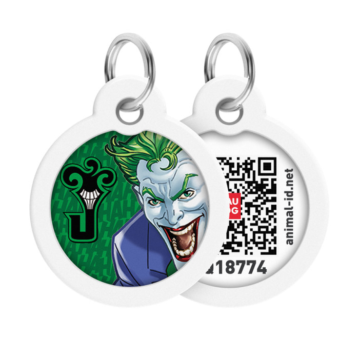 Адресник для собак і котів металевий WAUDOG Smart ID з QR паспортом, малюнок "Джокер зелений", коло, Д 30 мм