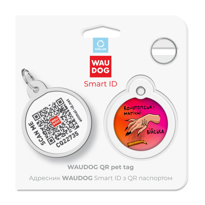 WAUDOG Smart ID з QR паспортом – серія розумних адресників з унікальними дизайнами для тварин.Переваги:• Ексклюзивні дизайни.•Наявність QR-коду, сканування якого дає можливість отримати інформацію про тварину та її власника.•Можливість створити QR паспорт у міжнародній базі свійських тварин animal-id.net.