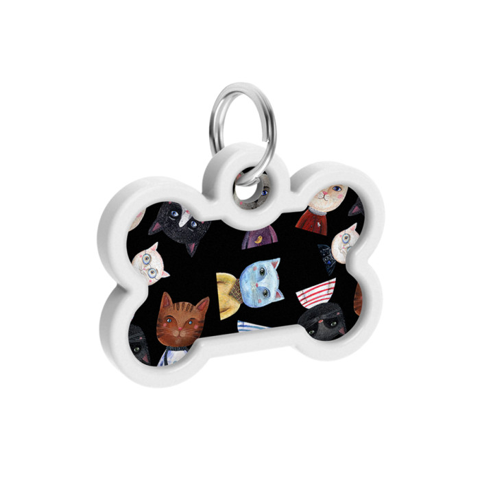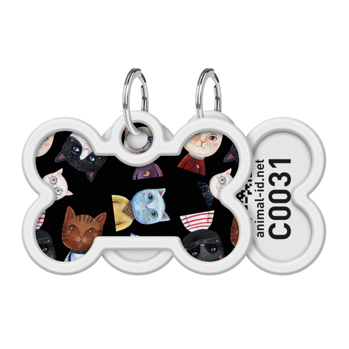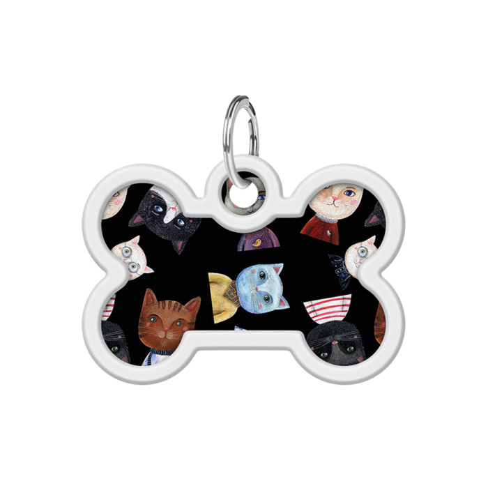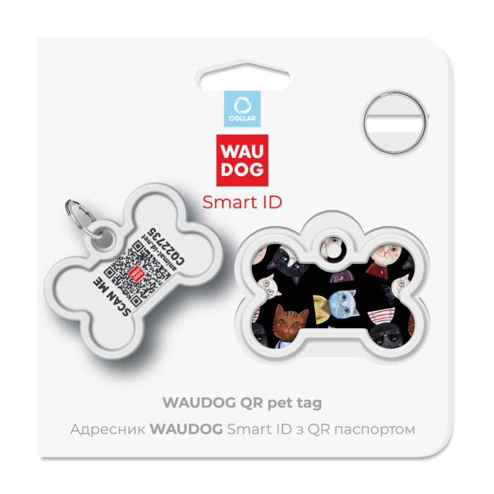 Адресник для собак і котів металевий WAUDOG Smart ID з QR паспортом, малюнок "Коти", кістка, Д 40 мм, Ш 28 мм