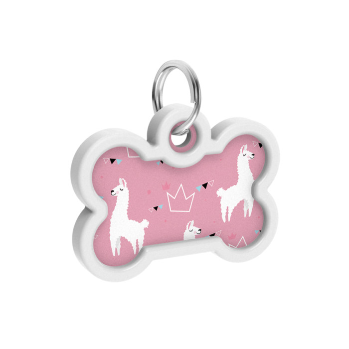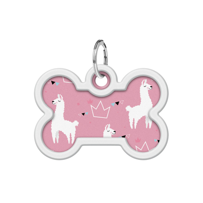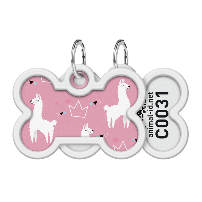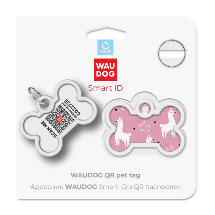 Адресник для собак і котів металевий WAUDOG Smart ID з QR паспортом, малюнок "Лами", кістка, Д 40 мм, Ш 28 мм