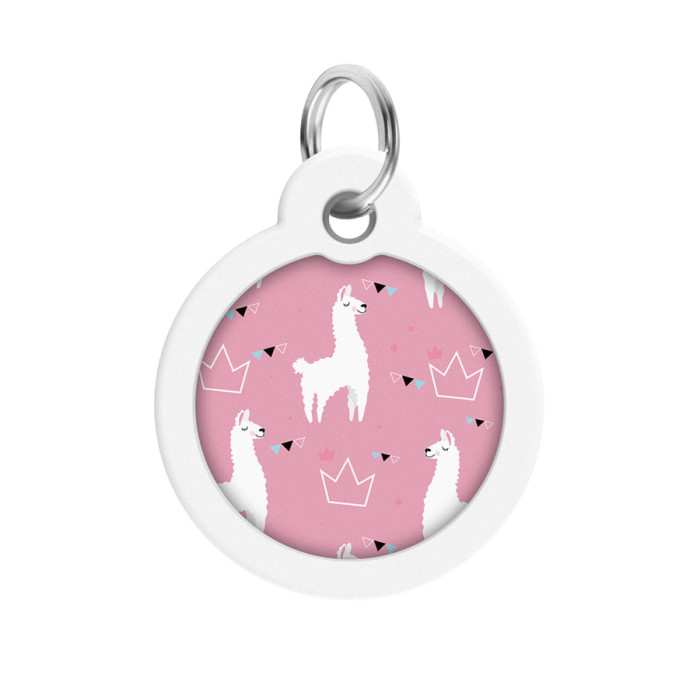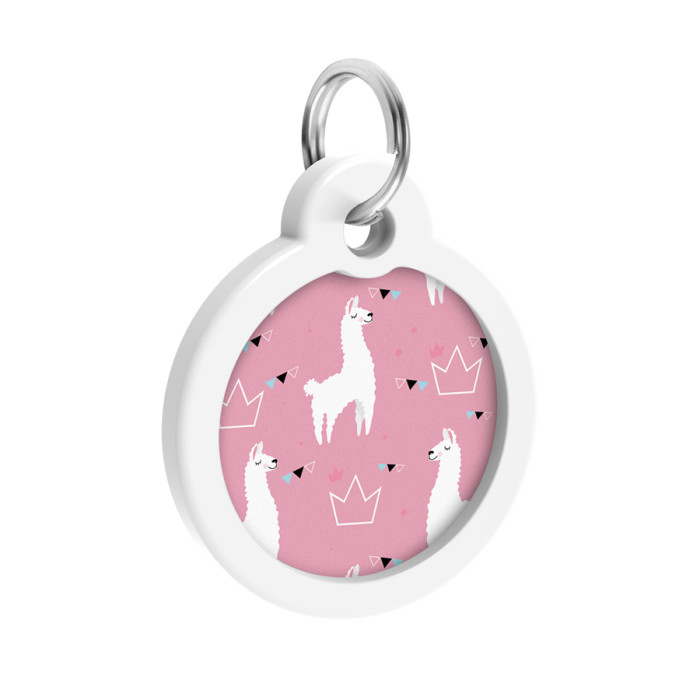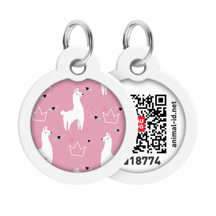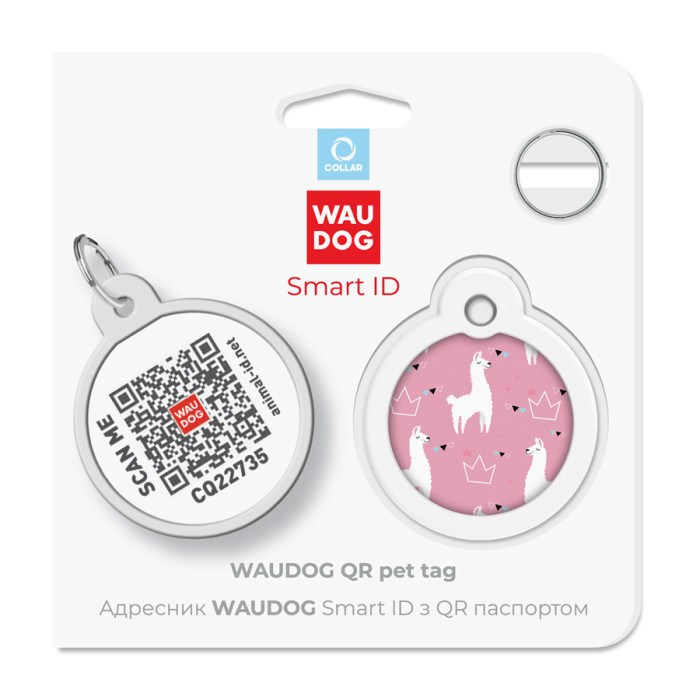 Адресник для собак і котів металевий WAUDOG Smart ID з QR паспортом, малюнок "Лами", коло, Д 30 мм