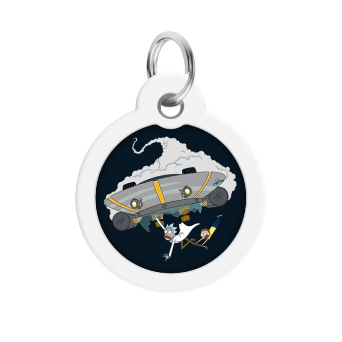 Адресник для собак і котів металевий WAUDOG Smart ID з QR паспортом, малюнок "Рік та Морті 1", коло, Д 30 мм