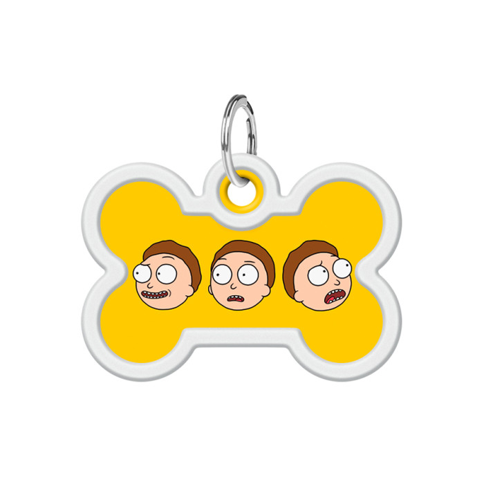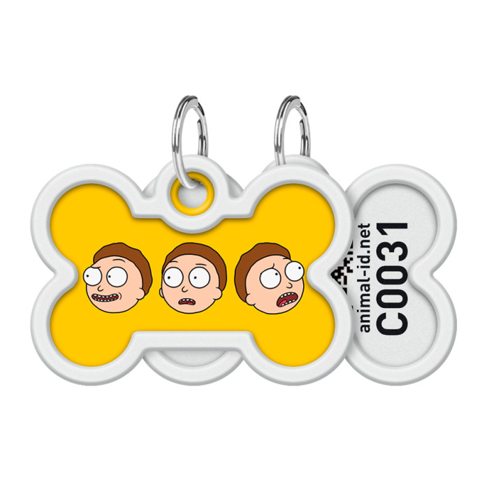 Адресник для собак і котів металевий WAUDOG Smart ID з QR паспортом, малюнок "Рік та Морті 2", кістка, Д 40 мм, Ш 28 мм