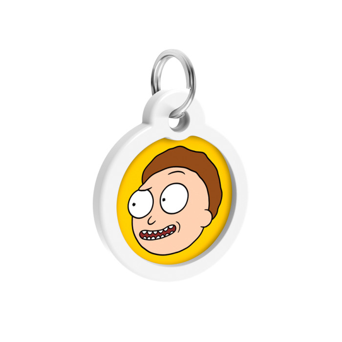 Адресник для собак і котів металевий WAUDOG Smart ID з QR паспортом, малюнок "Рік та Морті 2", коло, Д 25 мм
