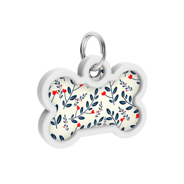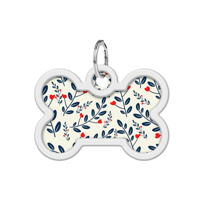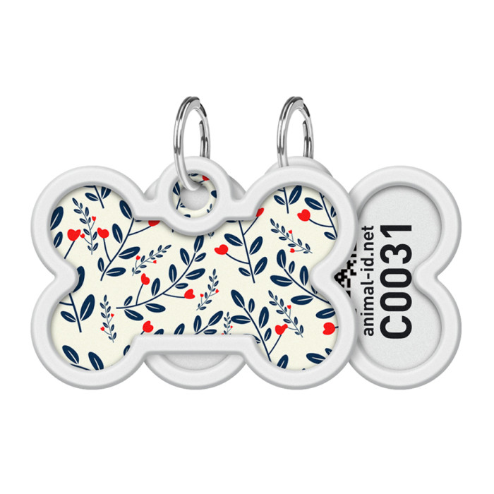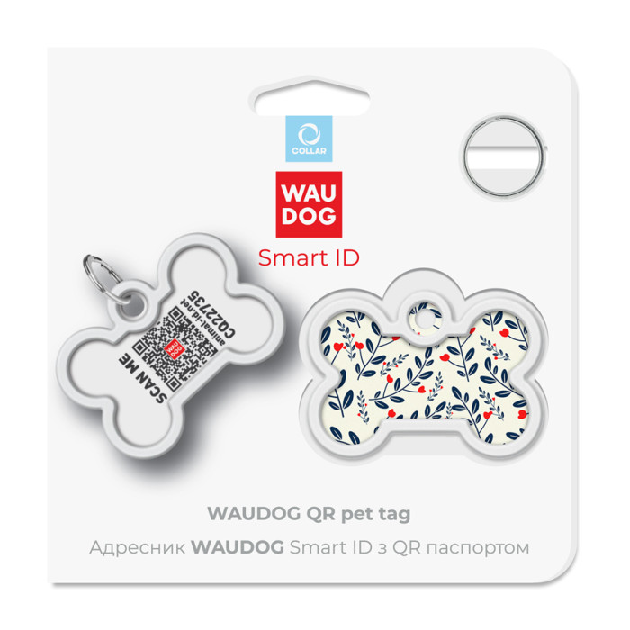 Адресник для собак і котів металевий WAUDOG Smart ID з QR паспортом, малюнок "Рослини", кістка, Д 40 мм, Ш 28 мм