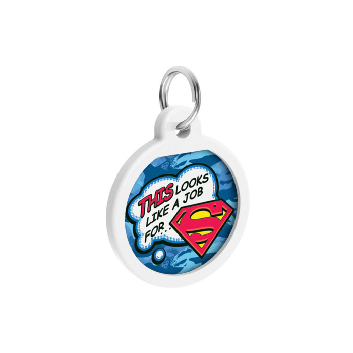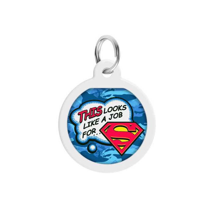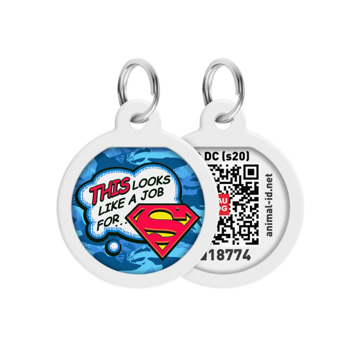 Адресник для собак та котів металічний WAUDOG Smart ID з QR паспортом, малюнок "Робота для Супермена", круг, Д 25 мм