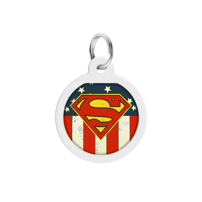 Адресник для собак та котів металічний WAUDOG Smart ID з QR паспортом, малюнок "Супермен Америка", круг, Д 25 мм