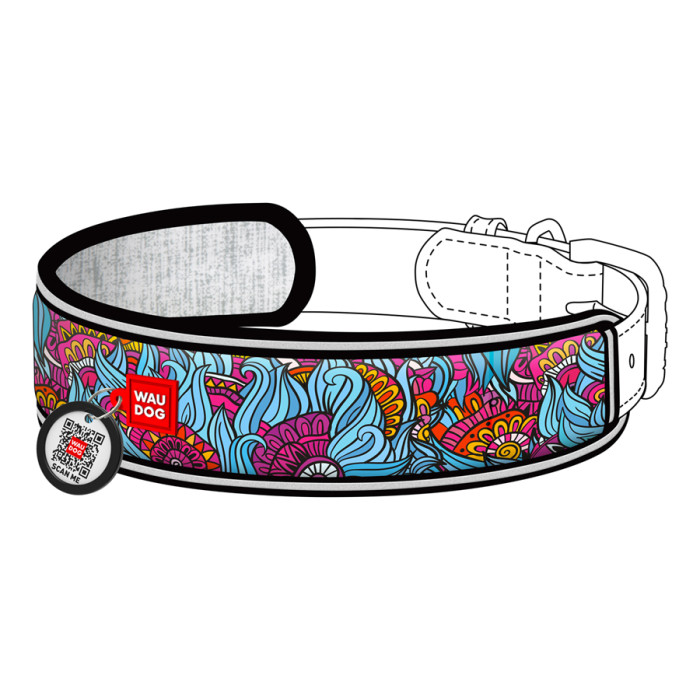 Ергономічна накладка на нашийник WAUDOG Nylon з QR-паспортом, малюнок "Літо" (розмір S, для ширини нашийника 15-20 см)