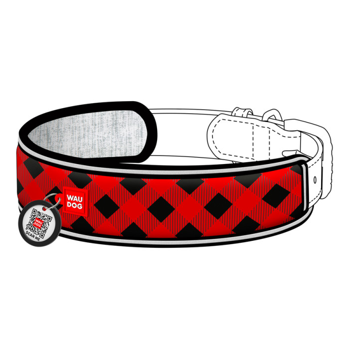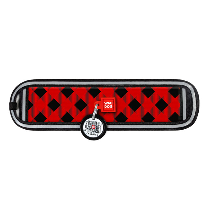 Ергономічна накладка на нашийник WAUDOG Nylon з QR-паспортом, малюнок "Шотландка червона" (розмір S, для ширини нашийника 15-20 см)
