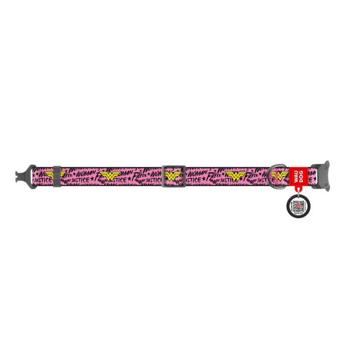 Нашийник для собак нейлоновий WAUDOG Nylon з QR паспортом, малюнок "Чудо-жінка", металічна пряжка-фастекс, Ш 25 мм, Дов 37-58 см