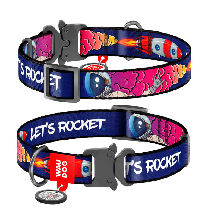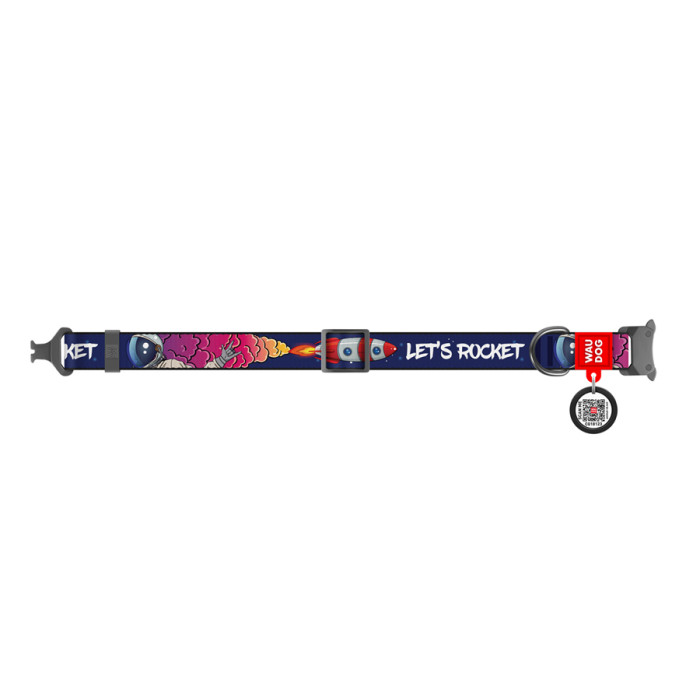 Нашийник для собак нейлоновий WAUDOG Nylon з QR-паспортом, малюнок "Космос. Ракета", металева пряжка-фастекс, XL, Ш 25 мм, Д 35-58 см