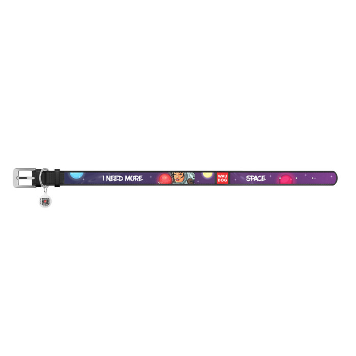 Нашийник для собак шкіряний WAUDOG Design з QR паспортом, малюнок "Більше космосу", L, Ш 25 мм, Дов 37-48 см чорний