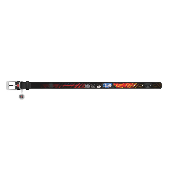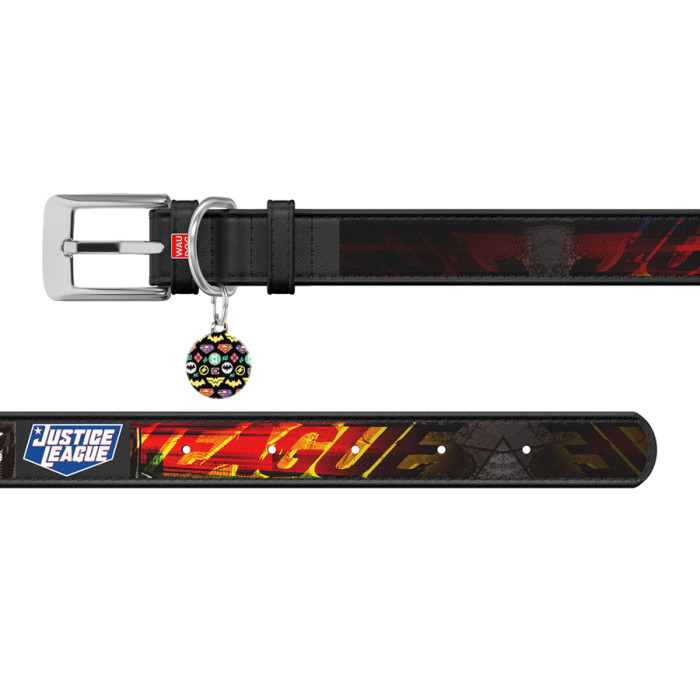 Нашийник для собак шкіряний WAUDOG Design з QR паспортом, малюнок "Ліга справедливості", Ш 25 мм, Дов 37-48 см чорний