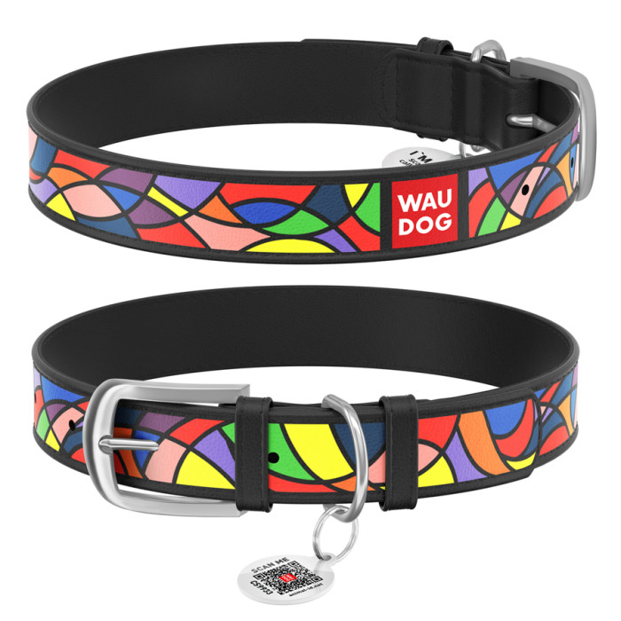 Амуніція WAUDOG – нова серія шкіряної амуніції, виготовленої з якісної натуральної шкіри, що прикрашена повнокольоровим зносостійким малюнком. Завдяки яскравим і привабливим візерункам ці вироби просто не зможуть залишитися непоміченими. Довжина нашийника підбирається відповідно до обхвату шиї хвостатого друга, який визначають вимірювальною стрічкою. При цьому правильно додавати до отриманого результату від 2 см (для середніх і дрібних порід) до 5 см (для великих), щоб нашийник не натирав і не здавлював шию тварини.