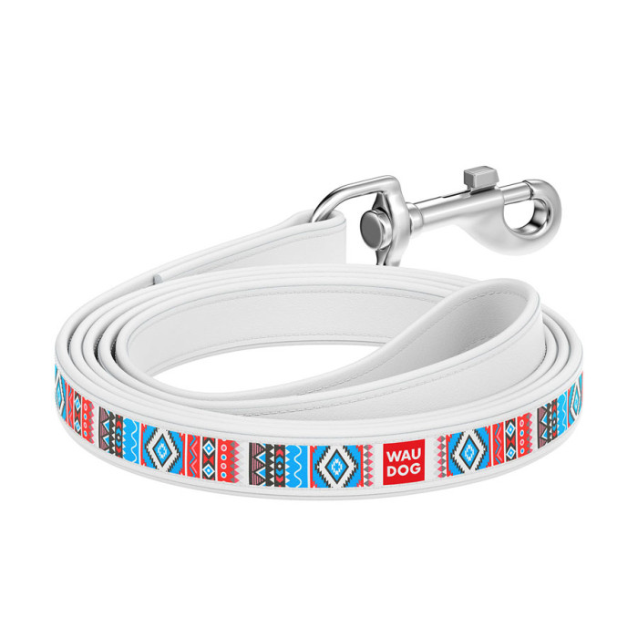 Повідець WAUDOG Design з малюнком "Етно" (ширина 18 мм, довжина 122 см) білий