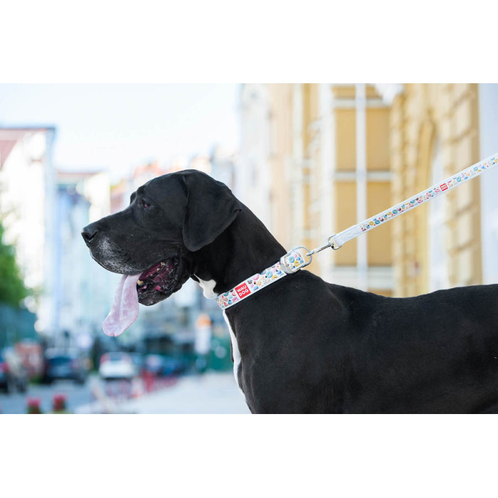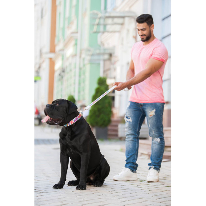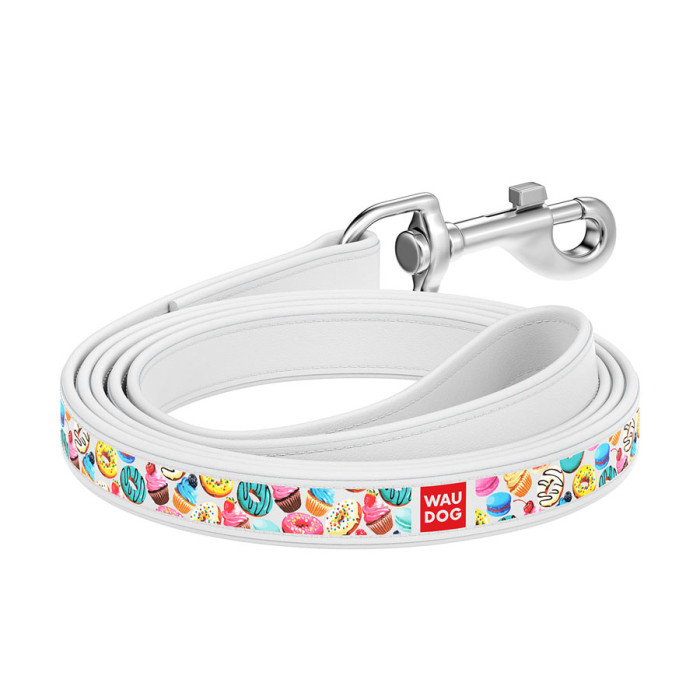 Повідець WAUDOG Design з малюнком "Пончики" (ширина 25 мм, довжина 122 см) білий