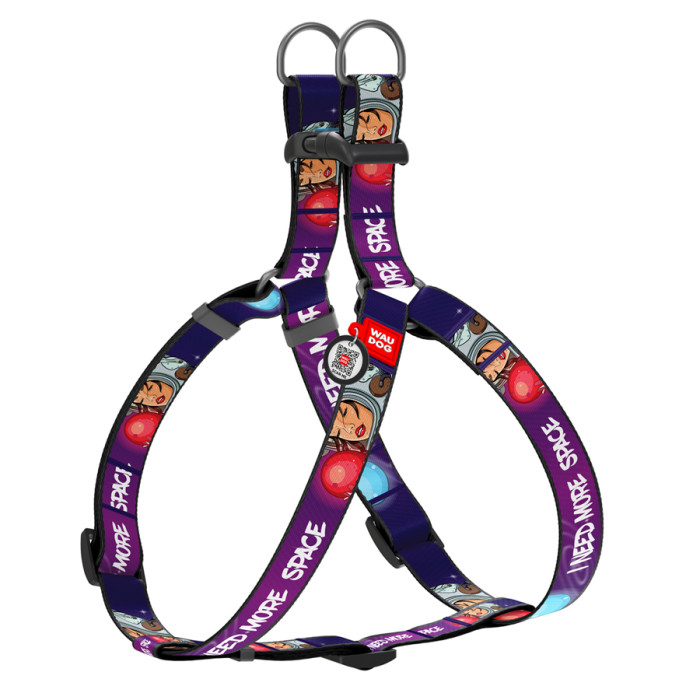 Шлея для собак нейлонова WAUDOG Nylon з QR-паспортом, малюнок "Більше космосу", пластиковий фастекс, L, Ш 25 мм, Д 60-90 см