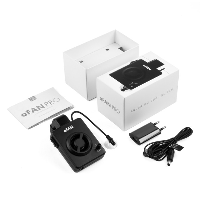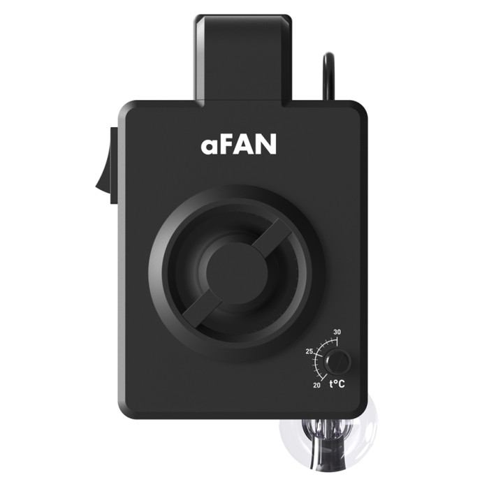 Вентилятор охолодження aFAN PRO розроблений для ефективного і безшумного охолодження акваріумів, а також для організації циркуляції повітря в тераріумах будь-якого типу. Продумане кріплення із зовнішньої сторони акваріума перешкоджає передчасному виходу вентилятора з ладу від підвищеної вологості та корозії, а також дозволяє використовувати його з морськими акваріумами. Має дві швидкості обертання: стандартну і підвищену. Може під’єднуватися до будь-якого роз'єму USB.aFAN PRO оснащений термостатом і дозволяє налаштувати роботу вентилятора в автоматичному режимі. Регулятор на корпусі дозволяє задати температуру автоматичного вмикання / вимикання вентилятора в діапазоні від 20°С до 30°С.