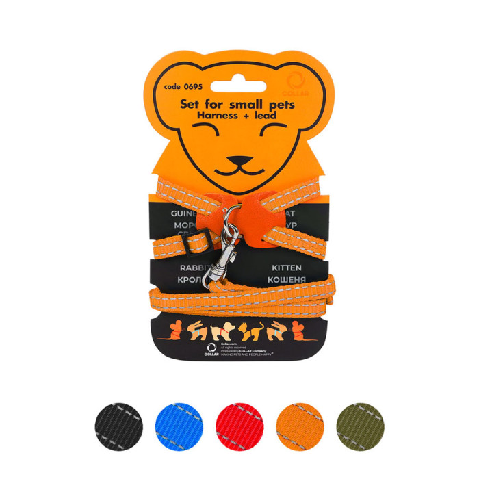 Шлея Dog Extreme з нейлону на планшеті для морських свинок, декоративних крис (ширина 10мм, В:22-29см) помаранчевий