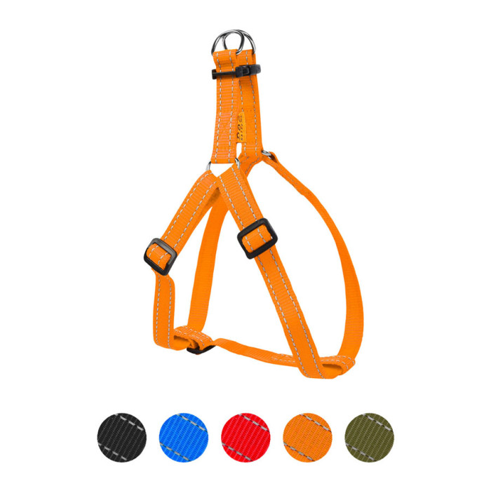 Шлея виготовлена зі зносостійкого нейлону та має регульовану довжину, завдяки чому краще сідає на тварину та забезпечує їй максимальний комфорт. Амуніція відзначається якістю, доступністю, має широкий вибір розмірів та яскраву палітру кольорів.Переваги:Зносостійкий нейлон;Світловідбивні елементи;Надійна фурнітура;Легкість та компактність.