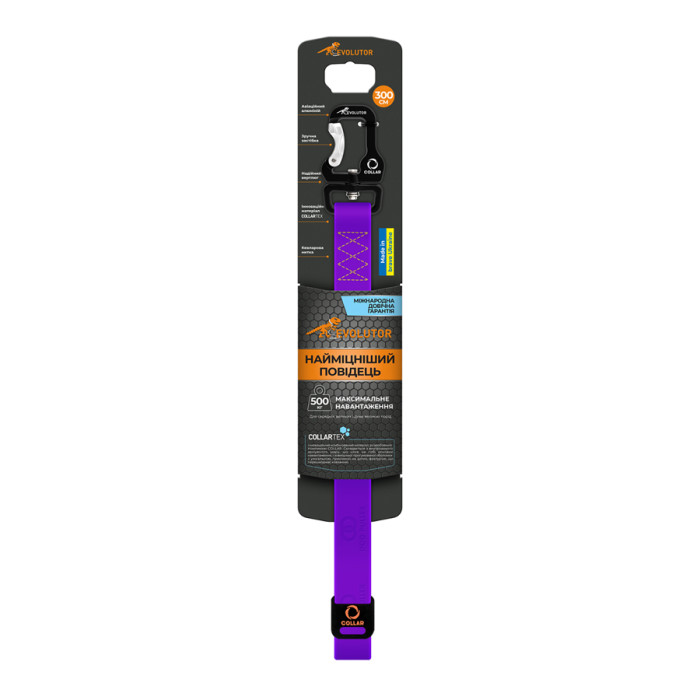Повідці EVOLUTOR виготовлені з інноваційного комбінованого матеріалу, розробленого Компанією COLLAR. складається зі внутрішнього армуючого шару, що несе на собі основне навантаження, і зовнішньої прогумованої оболонки з унікальною приємною на дотик фактурою, що перешкоджає ковзанню. Незважаючи на безпрецедентну міцність, матеріал дуже легкий, що дозволяє значно знизити вагу амуніції та зробити її зручнішою у використанні.