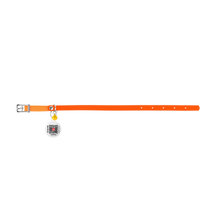 Нашийник для котів шкіряний WAUDOG Glamour з QR паспортом, без прикрас, XXS, Ш 9 мм, Дов 22-30 см помаранчевий
