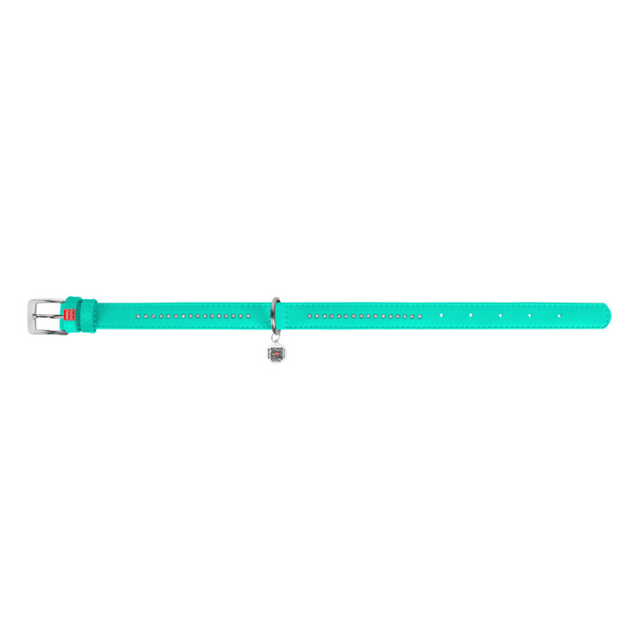 Нашийник для собак шкіряний WAUDOG Glamour з QR паспортом, подвійний зі стразами, M, Ш 20 мм, Дов 30-39 см ментоловий