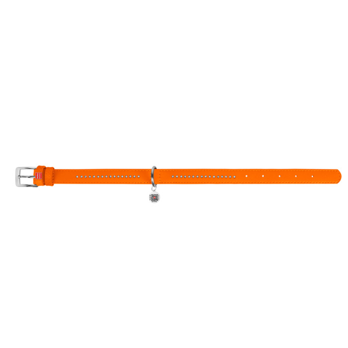 Нашийник для собак шкіряний WAUDOG Glamour з QR паспортом, подвійний зі стразами, M, Ш 20 мм, Дов 30-39 см помаранчевий