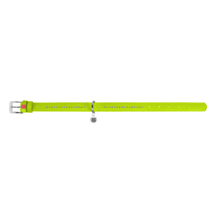 Нашийник для собак шкіряний WAUDOG Glamour з QR паспортом, подвійний зі стразами, S, Ш 15 мм, Дов 27-36 см салатовий