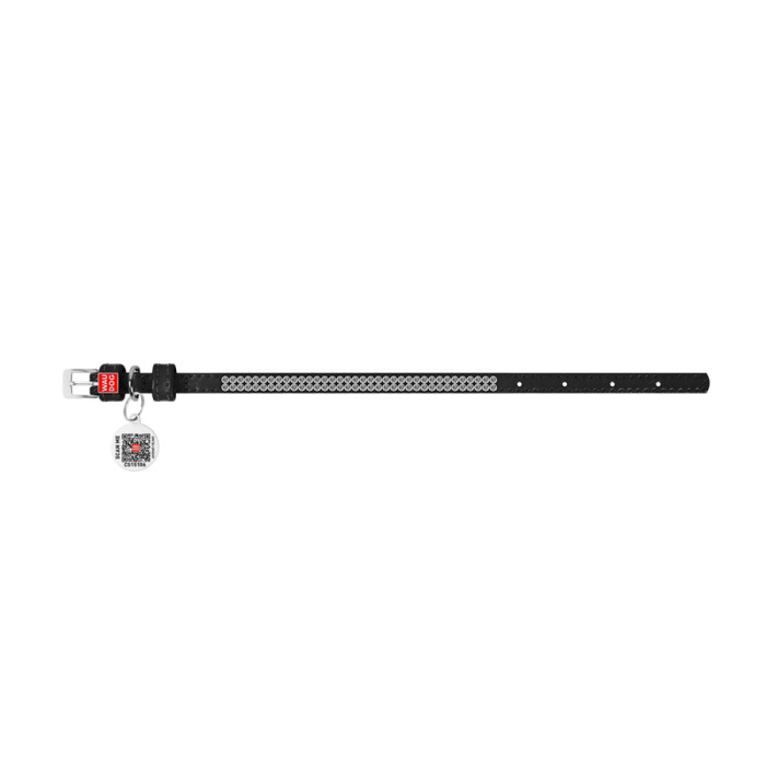 Нашийник для собак шкіряний WAUDOG Glamour з QR паспортом, з прикрасою "Полотно стрази", XXS, Ш 9 мм, Дов 19-25 см чорний