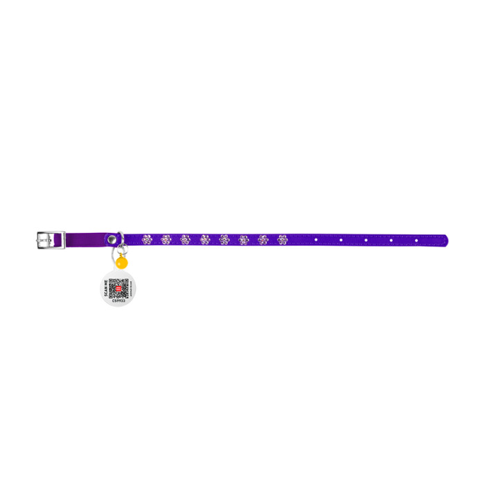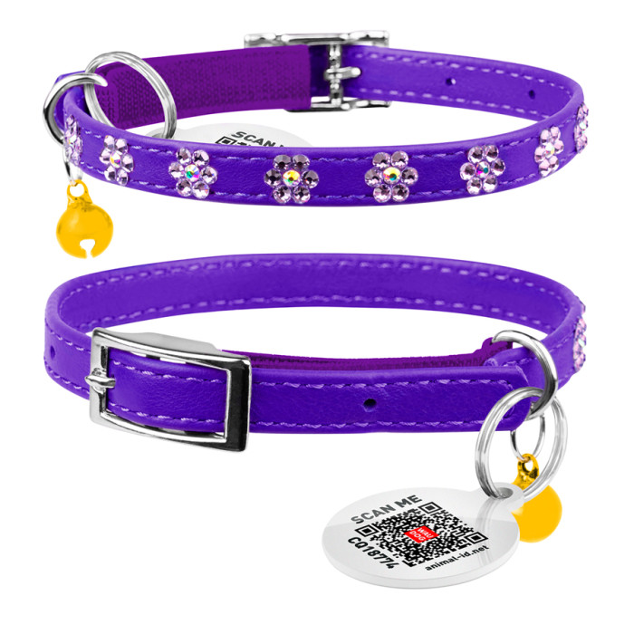 Нашийник WAUDOG Glamour з резинкою, клейовими стразами "Квітка" для котів (ширина 9мм, довжина 22-30см) фіолетовий