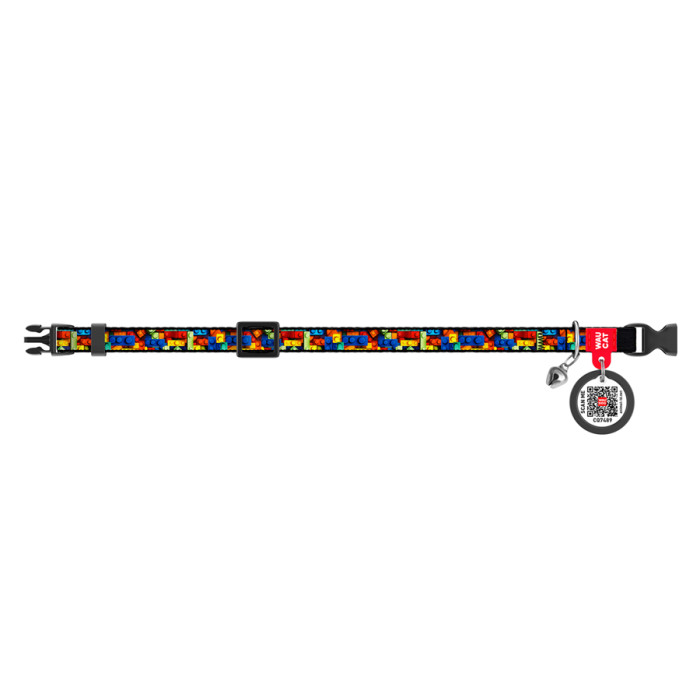 Нашийник для котів нейлоновий WAUDOG Nylon з QR паспортом, малюнок "Блоки", пластиковий фастекс, XS, Ш 10 мм, Дов 20-30 см