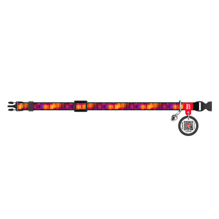 Нашийник для котів нейлоновий WAUDOG Nylon з QR паспортом, малюнок "Куби 3Д", пластиковий фастекс, XS, Ш 10 мм, Дов 20-30 см
