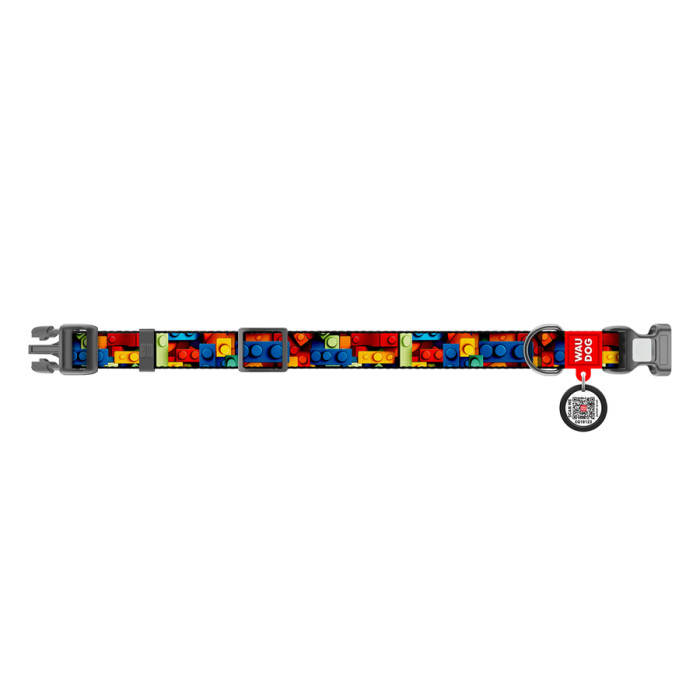 Нашийник для собак нейлоновий WAUDOG Nylon з QR паспортом, малюнок "Блоки", пластиковий фастекс, S, Ш 15 мм, Дов 25-35 см