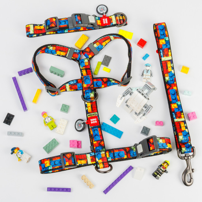 Нашийник для собак нейлоновий WAUDOG Nylon з QR паспортом, малюнок "Блоки", пластиковий фастекс, XL, Ш 25 мм, Дов 37-58 см
