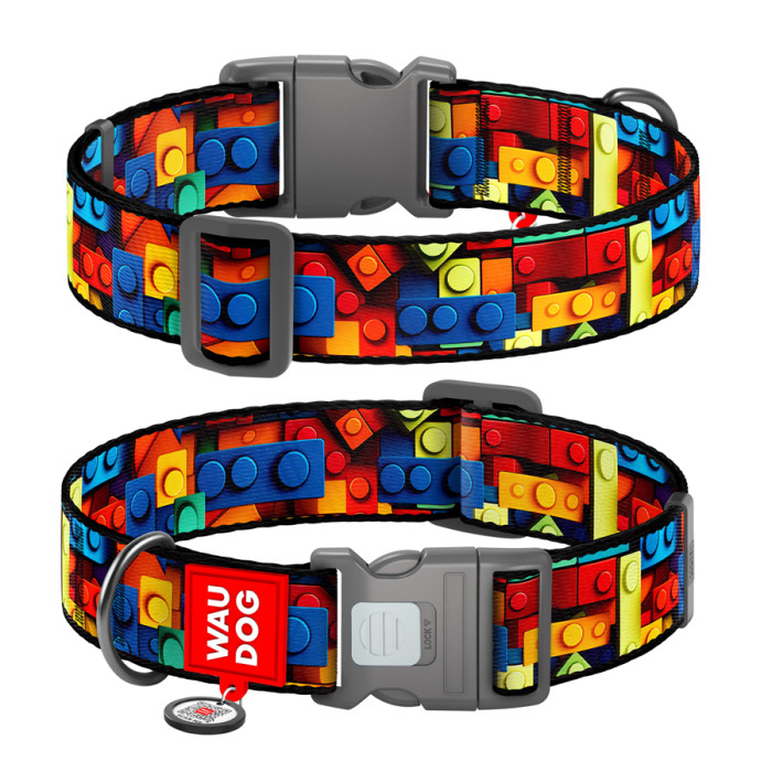 Нашийник для собак нейлоновий WAUDOG Nylon з QR паспортом, малюнок "Блоки", пластиковий фастекс, XXL, Ш 35 мм, Дов 46-70 см