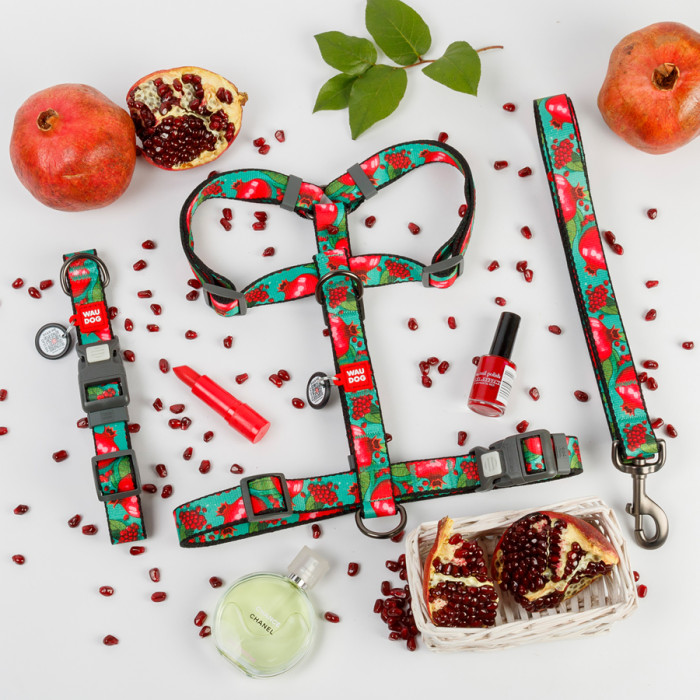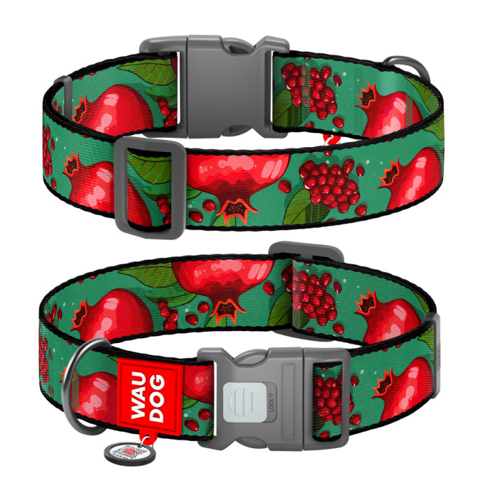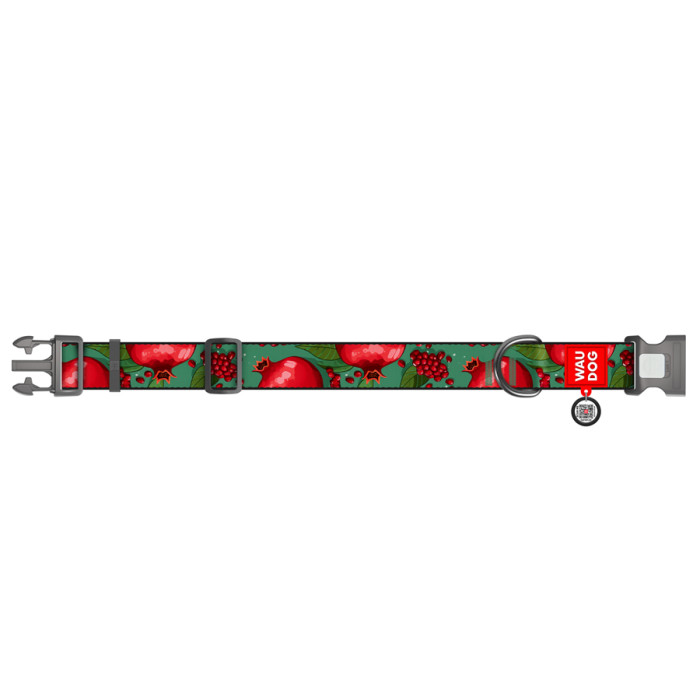 Нашийник для собак нейлоновий WAUDOG Nylon з QR паспортом, малюнок "Гранати", пластиковий фастекс, XXL, Ш 35 мм, Дов 46-70 см
