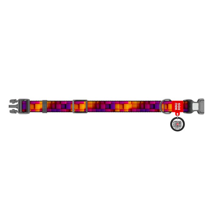 Нашийник для собак нейлоновий WAUDOG Nylon з QR паспортом, малюнок "Куби 3Д", пластиковий фастекс, М, Ш 20 мм, Дов 28-40 см