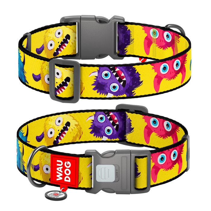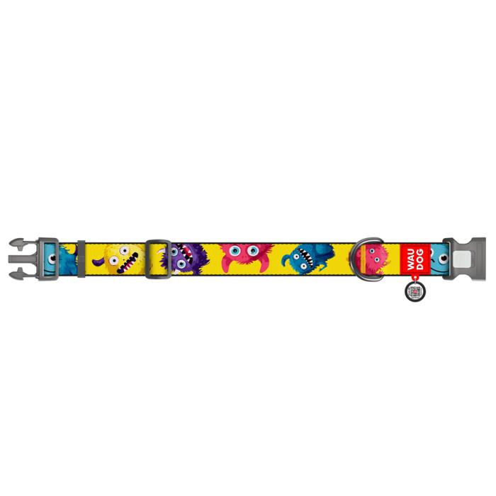 Нашийник для собак нейлоновий WAUDOG Nylon з QR паспортом, малюнок "Мохнаті монстри", пластиковий фастекс, XXL, Ш 35 мм, Дов 46-70 см