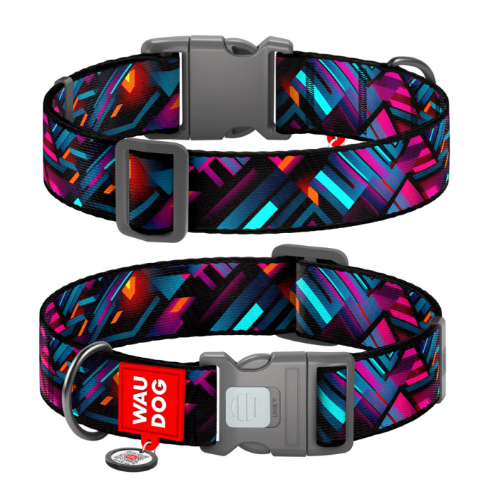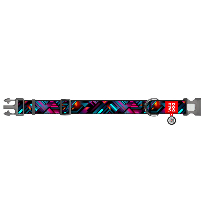 Нашийник для собак нейлоновий WAUDOG Nylon з QR паспортом, малюнок "Нескінченні світи", пластиковий фастекс, XXL, Ш 35 мм, Дов 46-70 см