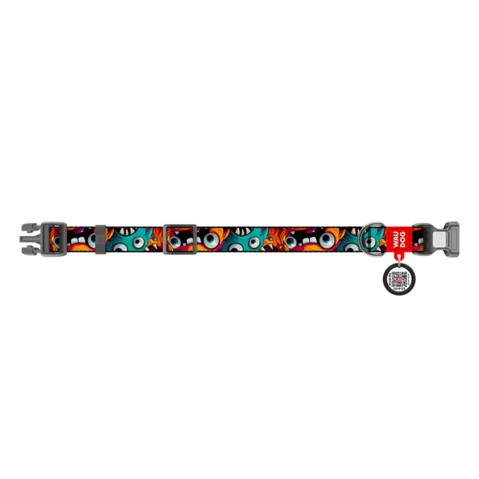 Нашийник для собак нейлоновий WAUDOG Nylon з QR паспортом, малюнок "Зубасті монстри", пластиковий фастекс, М, Ш 20 мм, Дов 28-40 см