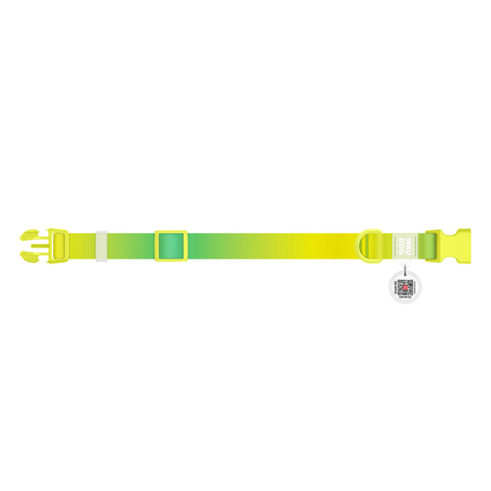 Нашийник для собак з нейлону WAUDOG Nylon Recycled c QR паспортом, градієнт, пластиковий фастекс, L, Ш 25 мм, Дов 33-49 см, салатовий