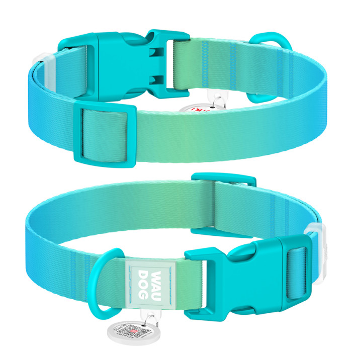 Нашийник для собак з нейлону WAUDOG Nylon Recycled c QR паспортом, градієнт, пластиковий фастекс, XL, Ш 25 мм, Дов 37-58 см, блакитний