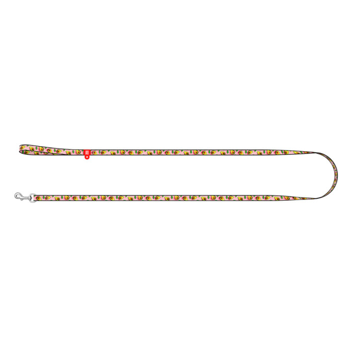 Повідець для котів та дрібних порід собак нейлоновий WAUDOG Nylon, малюнок "Авокадо на рожевому", XS, Ш 10 мм, Дов 122 см