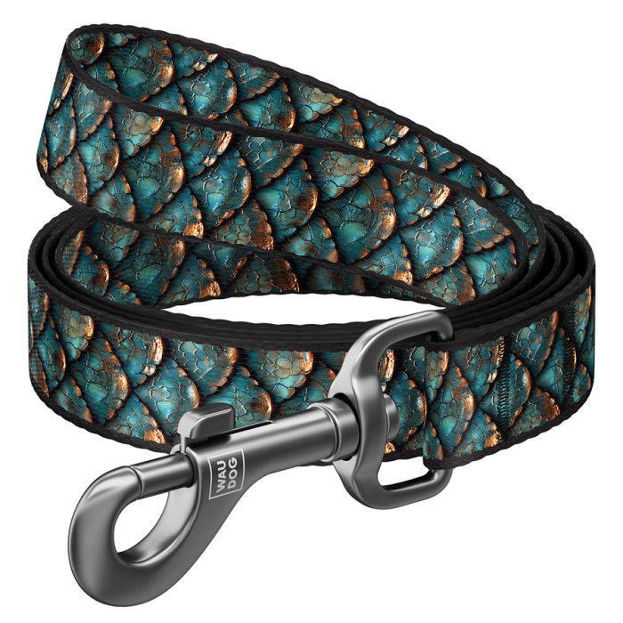 Повідець для собак нейлоновий WAUDOG Nylon, малюнок "Луска", S, Ш 15 мм, Дов 122 см