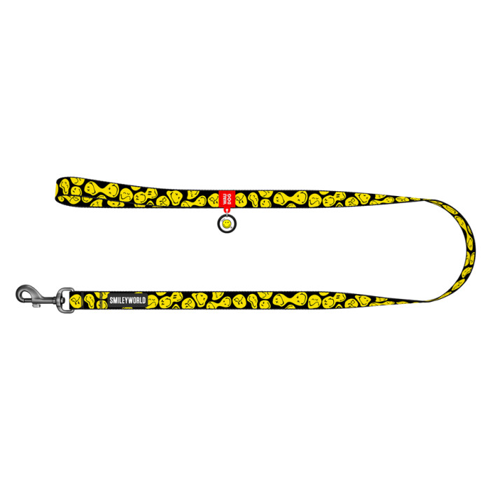 Повідець для собак нейлоновий WAUDOG Nylon, малюнок "Смайли на чорному", L-XXL, Ш 25 мм, Дов 122 см