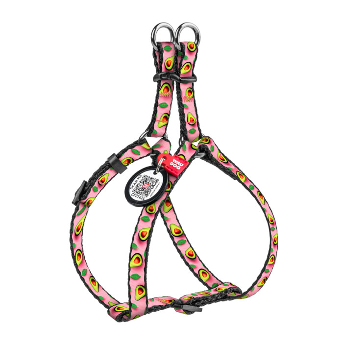 Шлея для котів та дрібних порід собак WAUDOG Nylon з QR паспортом, малюнок "Авокадо на рожевому", пластиковий фастекс, XS, Ш 10 мм, B=C 28-40 см