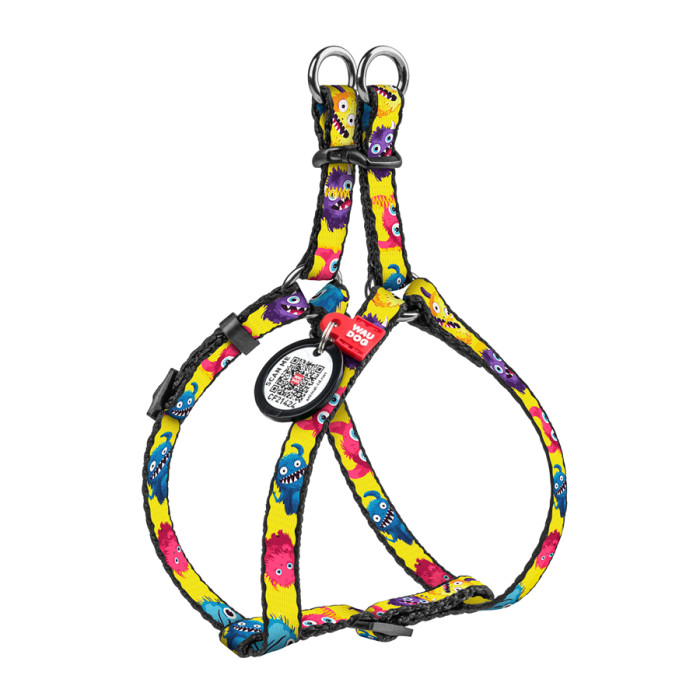 Шлея для котів та дрібних порід собак WAUDOG Nylon з QR паспортом, малюнок "Мохнаті монстри", пластиковий фастекс, XS, Ш 10 мм, B=C 28-40 см