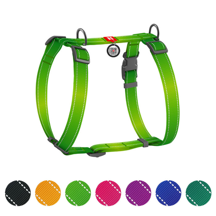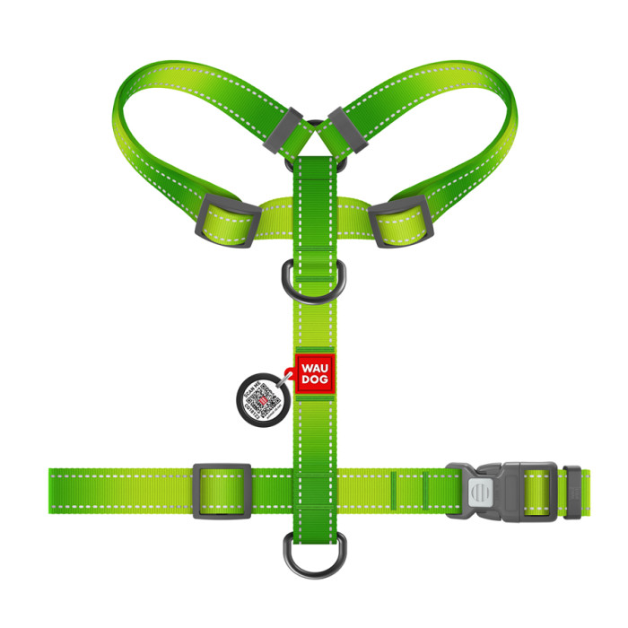 Шлея WAUDOG Nylon Mono завдяки особливій Н-подібній формі ідеально сідає на собаку і забезпечує йому максимальний комфорт. Вона розроблена таким чином, що при натягу повідця не відбувається стискання дихальних шляхів тварини. Має 2 півкільця для повідця (верхнє та нижнє), що дозволяє більш рівномірно розподілити фізичне навантаження на опорно-руховий апарат собаки.Переваги:•Анатомічна конструкція;• Фастекс із замком;• Довічна гарантія на фурнітуру;• Зносостійкий нейлон;•Адресник з QR-паспортом;• Світловідбивні елементи.