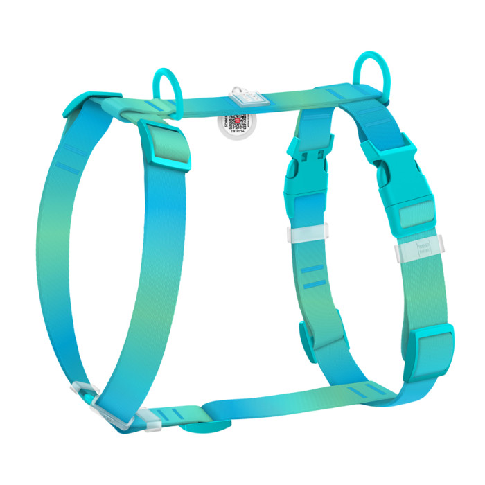 Шлея для собак анатомічна H-подібна WAUDOG Nylon Recycled з QR-паспортом, градієнт, пластиковий фастекс, L, Ш 25 мм, А 51-85 см, В 60-85 см, блакитний